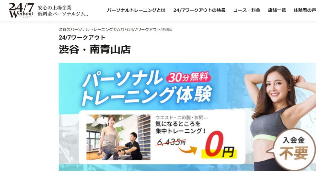 24/7ワークアウト渋谷・南青山店は、女性トレーナーが在籍する安心感あるパーソナルジムです。